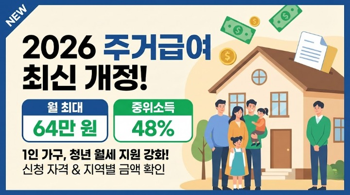 2026년 새해를 맞아 정부의 주거복지 혜택인 '주거급여' 기준이 역대급으로 인상되었습니다. 특히 1인 가구와 청년 가구에 대한 문턱이 낮아진 만큼, 내가 대상자인지 확인하는 것이 무엇보다 중요합니다.